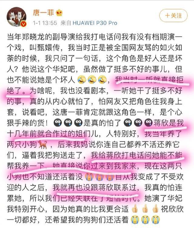 唐一菲还盛赞蒋欣演得好,她和蒋欣曾经是非常好的姐妹,后来她怕自己的负面新闻连累到和她关系亲密的好友,于是有意地切断了与蒋欣的联系。