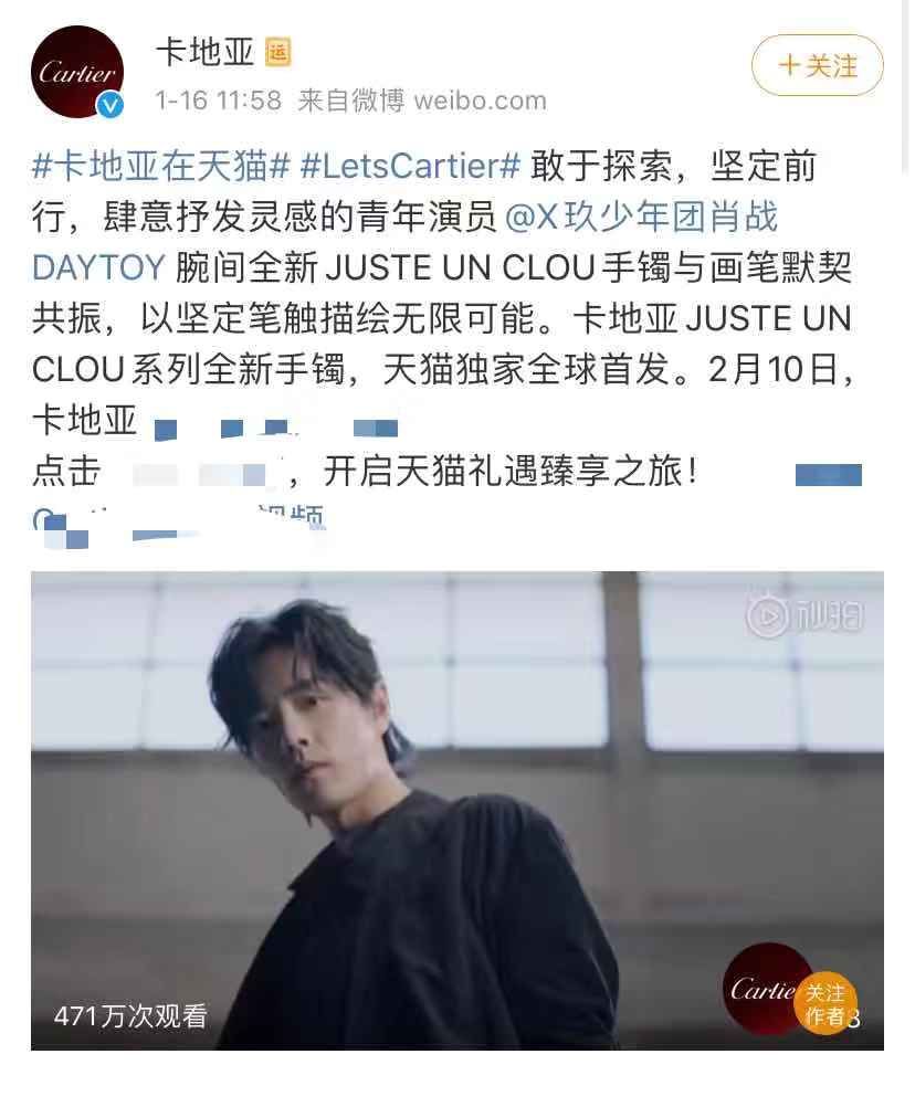 就在1月16日,肖战还官宣了奢侈品的代言。